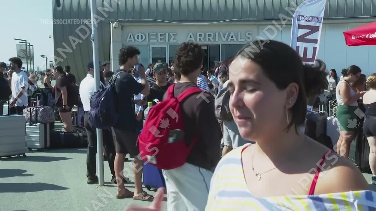Young people gathered at the Limassol port in Cyprus and shared their experiences after being evacuated from Israel. (AP video by Lefteris Pitarakis)