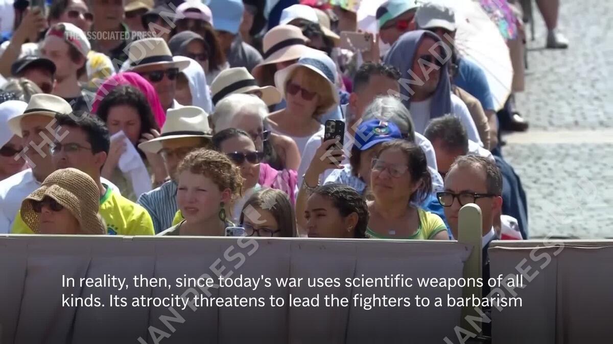 Pope Leo XIV warned Wednesday that high-tech weaponry being deployed on battlefields could bring “a level of barbarity far greater than that of past times.” Speaking to the faithful gathered in St. Peter’s Square he urged: “We must not get used to war. "