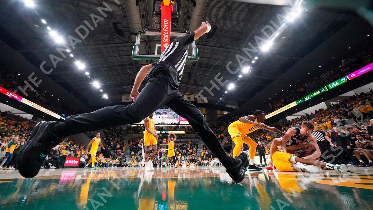 Referee Doug Sirmons, left, gets in position to make a call as Arizona forward Henri Veesaar, top right, competes for possession of the ball against Baylor guard Jayden Nunn, bottomr, right, and guard Jalen Celestine (50) during the second half of an NCAA college basketball game Monday, Feb. 17, 2025, in Waco, Texas. (AP Photo/Julio Cortez)