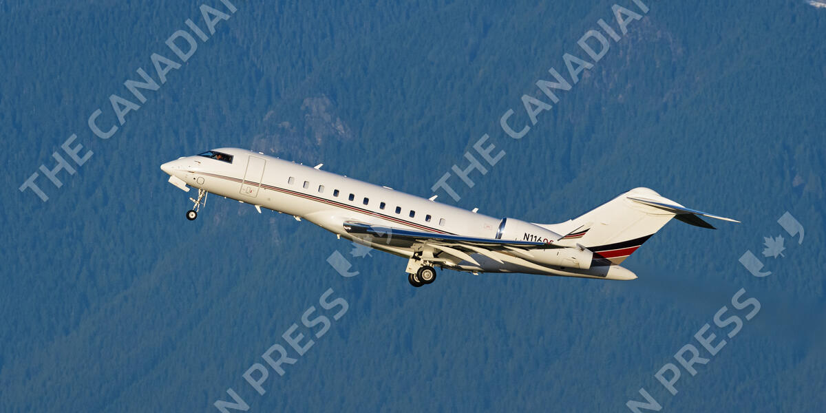 A Netjets Bombardier Global 5000 business jet (N116QS) airborne after take-off from Vancouver International Airport, Richmond, B.C. on Friday, December 3, 2021. THE CANADIAN PRESS IMAGES/Bayne Stanley
