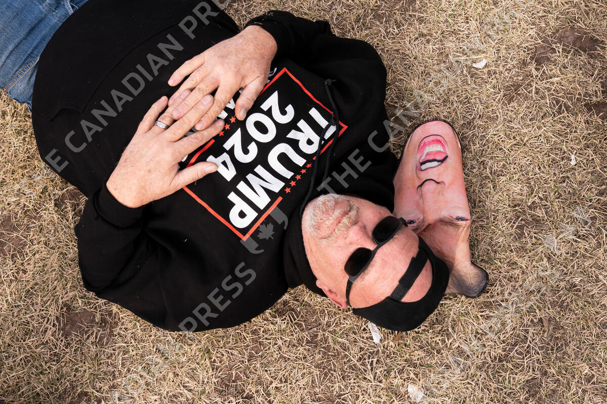 Randal Fortner relaxes before a rally for former President Donald Trump on Saturday, Jan. 15, 2022, in Florence, Ariz. (AP Photo/Nathan Howard)