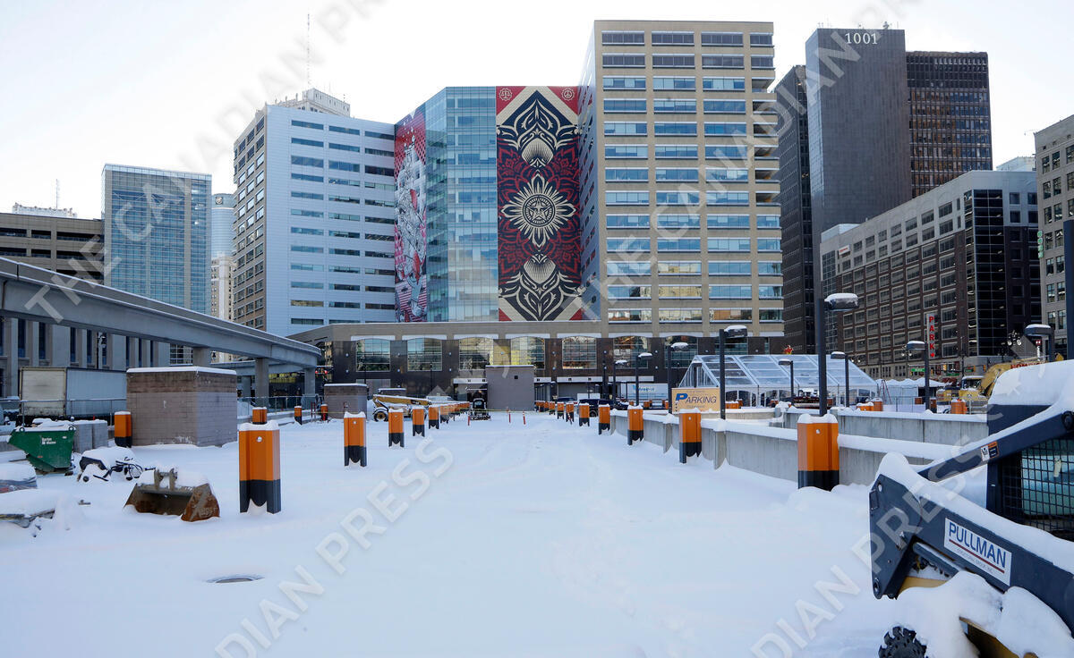 FILE - The site of the former J.L. Hudson Co. department store, is seen Thursday, Dec. 14, 2017, in Detroit. Michigan developers with "transformational" plans to redevelop brownfield sites can continue to seek tax incentives after Gov. Gretchen Whitmer and the Legislature extended the program for an additional five years, through 2027, instead of 2022. The state in 2018 awarded Bedrock, a commercial real estate firm owned by Dan Gilbert, $386 million of the tax breaks for a multibillion-dollar development project in Detroit that includes a 58-story building on the site of the iconic former J.L. Hudson department store. (AP Photo/Carlos Osorio, File)