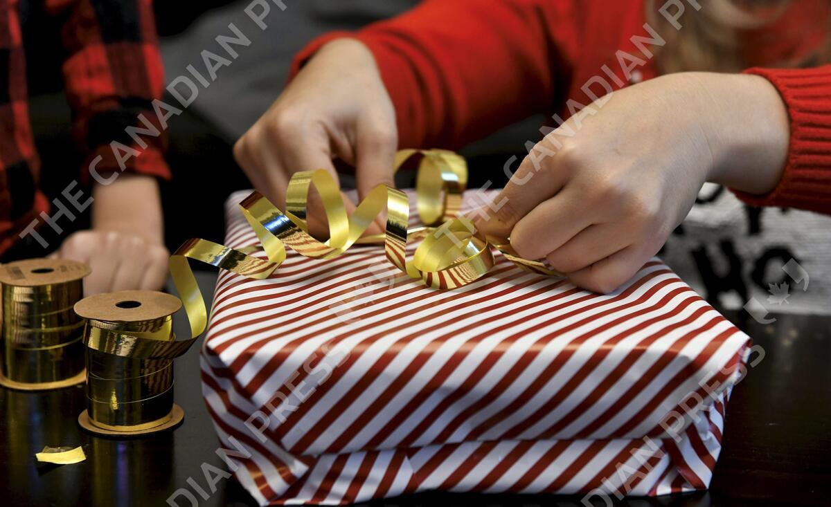 Family wraps up the Christmas presents at home in Espoo, Finland on 19th December, 2021. LEHTIKUVA / HEIKKI SAUKKOMAA - FINLAND OUT. NO THIRD PARTY SALES.