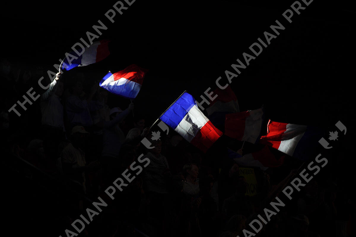 Supporters of far-right presidential candidate Eric Zemmour wave French flags during a campaign rally at the Palais des Victoires in Cannes, southern France, Saturday, Jan. 22, 2022. (AP Photo/Daniel Cole)