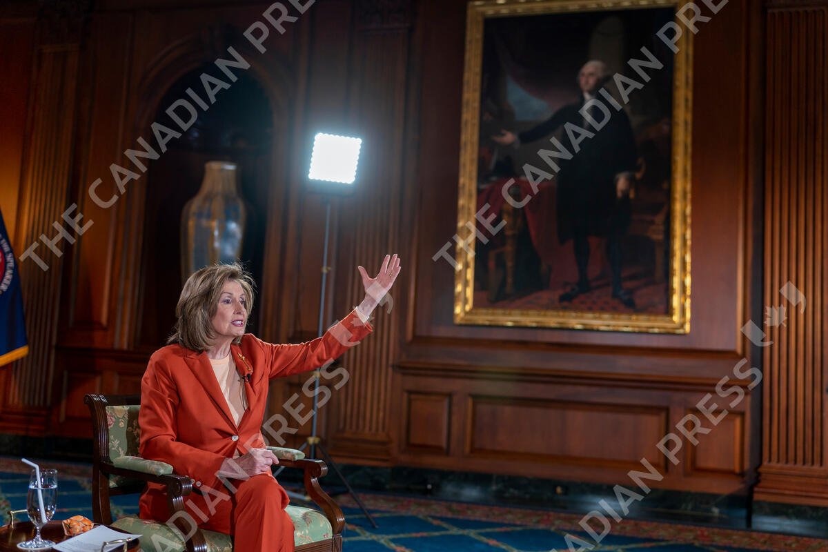 Speaker of the House Nancy Pelosi, D-Calif., talks to The Associated Press about the impact of the Jan. 6 attack by rioters loyal to then-President Donald Trump, on Capitol Hill in Washington, Wednesday, Jan. 5, 2022. (AP Photo/J. Scott Applewhite)