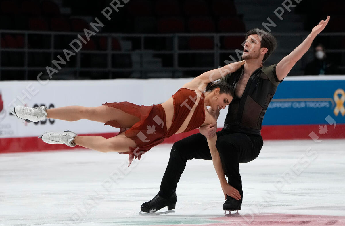 perform their routine during the senior dance free program at the National Skating Championships, in Ottawa, Saturday, Jan. 8, 2022. THE CANADIAN PRESS/Adrian Wyld