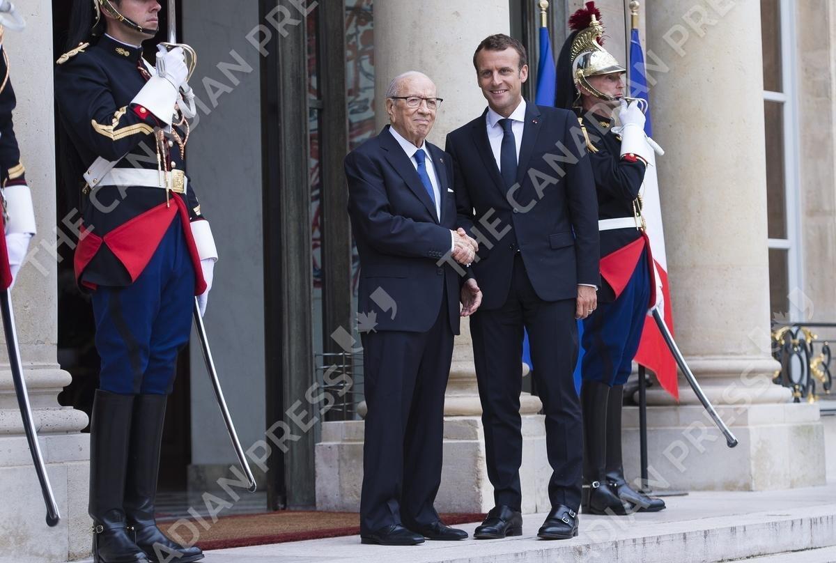 French President Emmanuel Macron and Tunisian President Beji Caid Essebsi at the Elysee Palace in Paris, France on May 29, 2018. Photo by Eliot Blondet/ABACAPRESS.COM