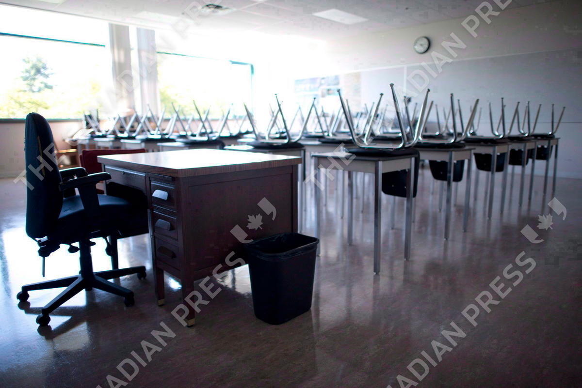 An empty classroom is shown in Vancouver on Sept. 5, 2014. There are no contract negotiations scheduled to head off possible strikes by tens of thousands of Ontario teachers this fall, and the government admits talks are at an impasse. THE CANADIAN PRESS/Jonathan Hayward