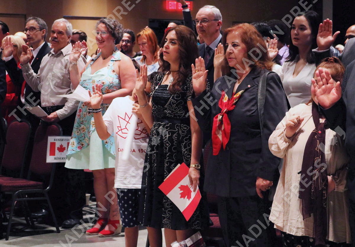 People take the citizenship oath at Pier 21 immigration centre in Halifax on Saturday, July 1, 2017. How many newcomers Canada will admit next year - and in the years ahead - will be revealed Wednesday as the federal immigration minister puts forward his plan. THE CANADIAN PRESS/Adina Bresge