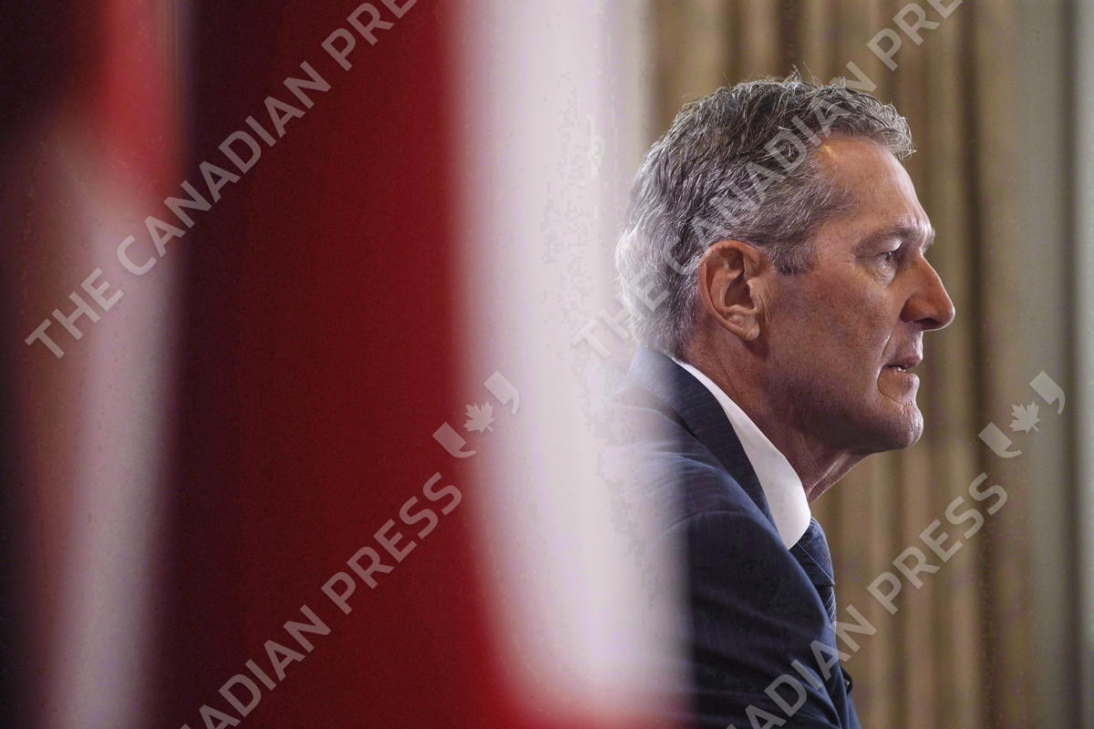 Manitoba Premier Brian Pallister speaks at a press conference during the Council of Federation meetings in Edmonton Alta, on Tuesday July 18, 2017. THE CANADIAN PRESS/Jason Franson
