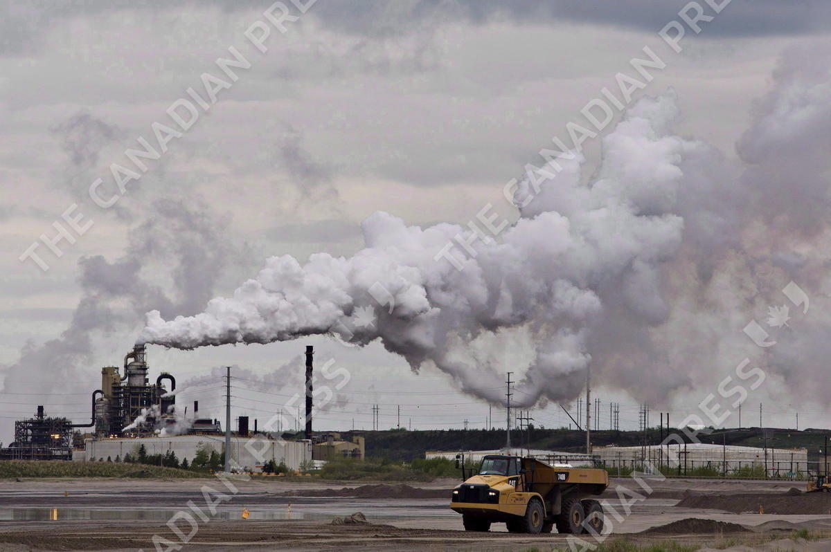 A dump truck works near the Syncrude oil sands extraction facility near the city of Fort McMurray, Alta., on June 1, 2014. A new study in the journal Nature finds that Alberta's oil sands are one of the largest sources of organic aerosol air pollution in North America. THE CANADIAN PRESS/Jason Franson