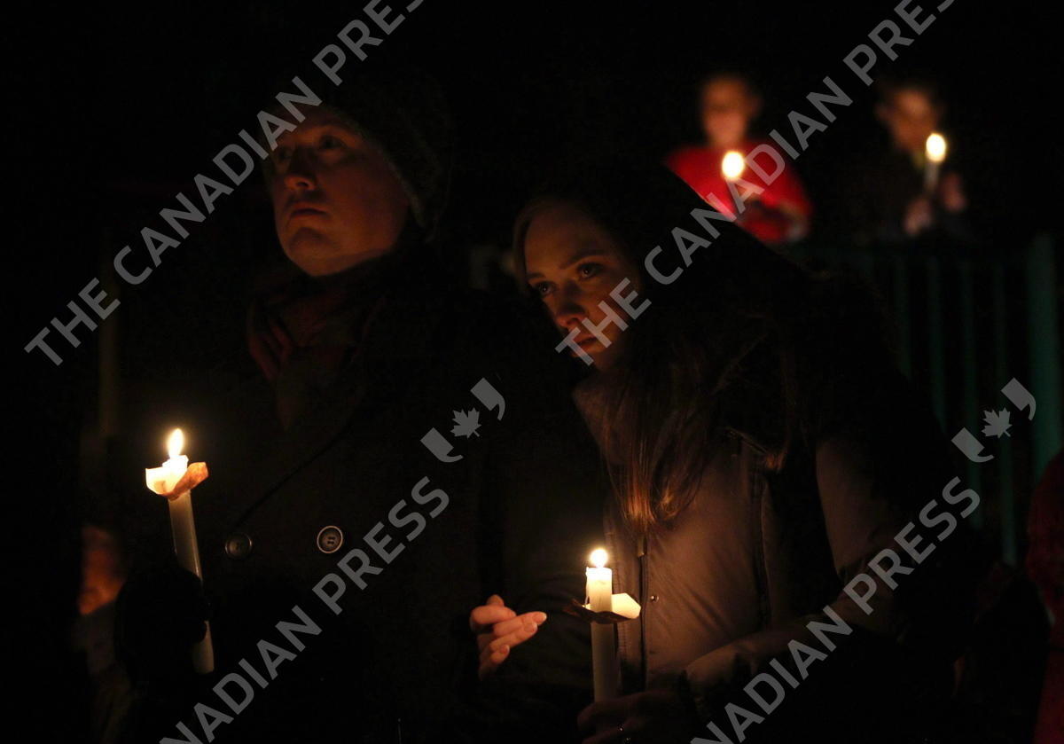 Hundreds of people hold candles in support and memory of Aubrey Berry, 4, and her sister Chloe, 6, during a vigil held at Willows Beach in Oak Bay, B.C., on Saturday, December 30, 2017. THE CANADIAN PRESS/Chad Hipolito