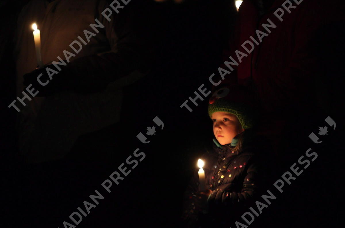 Viella Trausch a classmate of Aubrey Berry, 4, and her sister Chloe, 6, holds a candle during a vigil held at Willows Beach in Oak Bay, B.C., on Saturday, December 30, 2017. THE CANADIAN PRESS/Chad Hipolito