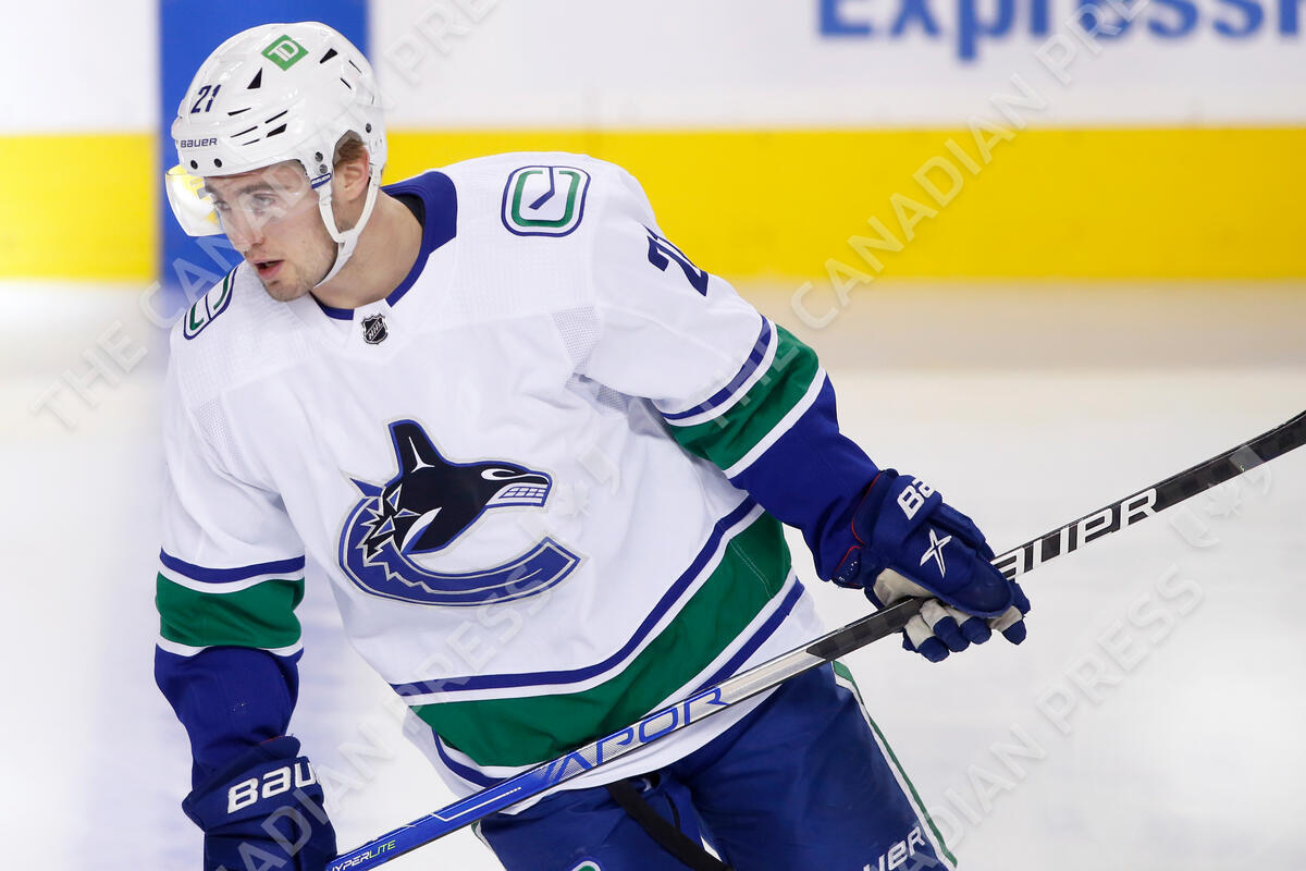 NHL profile photo on Vancouver Canucks player Nils Hoglander, from Sweden, at a game against the Calgary Flames in Calgary, Alta. on Jan. 29, 2022. THE CANADIAN PRESS IMAGES/Larry MacDougal