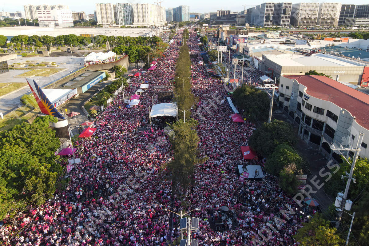 A giant crowd gathers during the presidential campaign rally of Vice-President Leni Robredo who is also celebrating her 57th birthday in Pasay City, Philippines on Saturday, April 23, 2022. Presidential hopefuls continue their election campaign with a cast of candidates led by a late dictator's son and the pro-democracy current vice-president as the country is set to vote next month. (AP Photo/Aaron Favila)