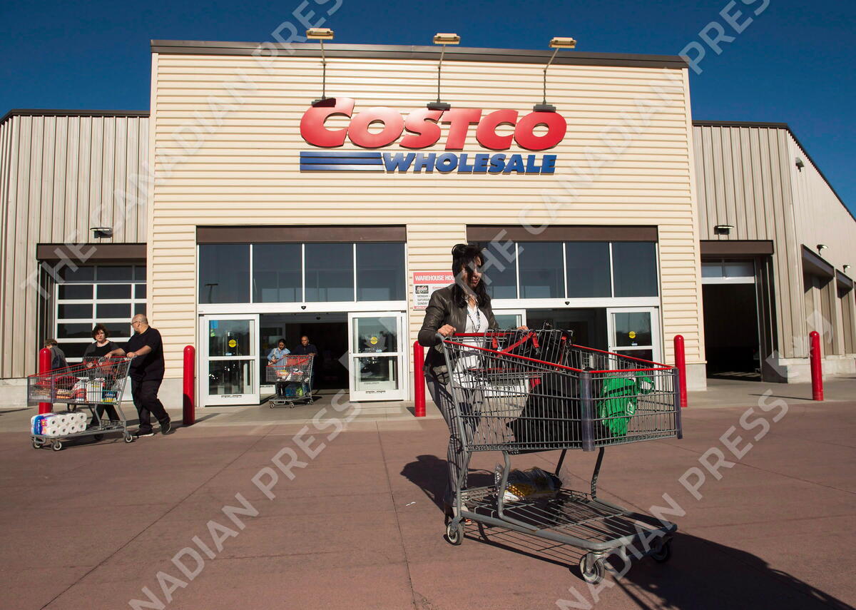 Customers push shopping carts at Costco in Mississauga, Ont., on Monday, May 15, 2017. A survey released on Friday suggests that Canadians are more likely to recommend Costco’s shopping experience over other grocers. THE CANADIAN PRESS/Nathan Denette