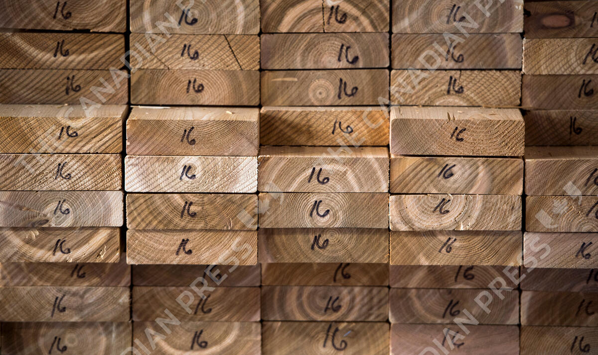 Cedar planks are stacked at a lumber yard, Tuesday, April 25, 2017 in Montreal. Canfor Corp. says it is making additional cuts to its production capacity due to the impact of COVID-19 on the price of lumber and demand. THE CANADIAN PRESS/Paul Chiasson