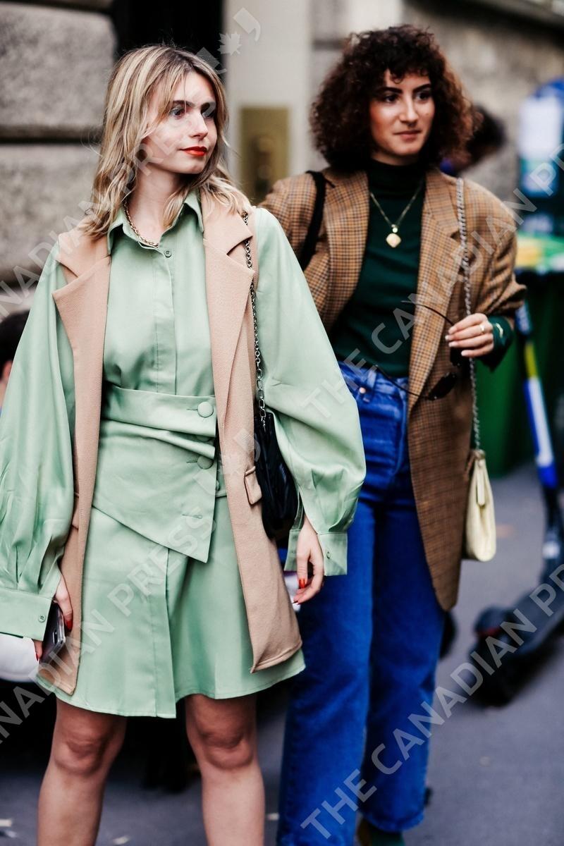 Street style, Marine (pretemoitaveste) and Luna (preteapartir) arriving at APC Spring-Summer 2020 ready-to-wear show, held at Rue Cassette, Paris, France, on September 30, 2019. Photo by Marie-Paola Bertrand-Hillion/ABACAPRESS.COM