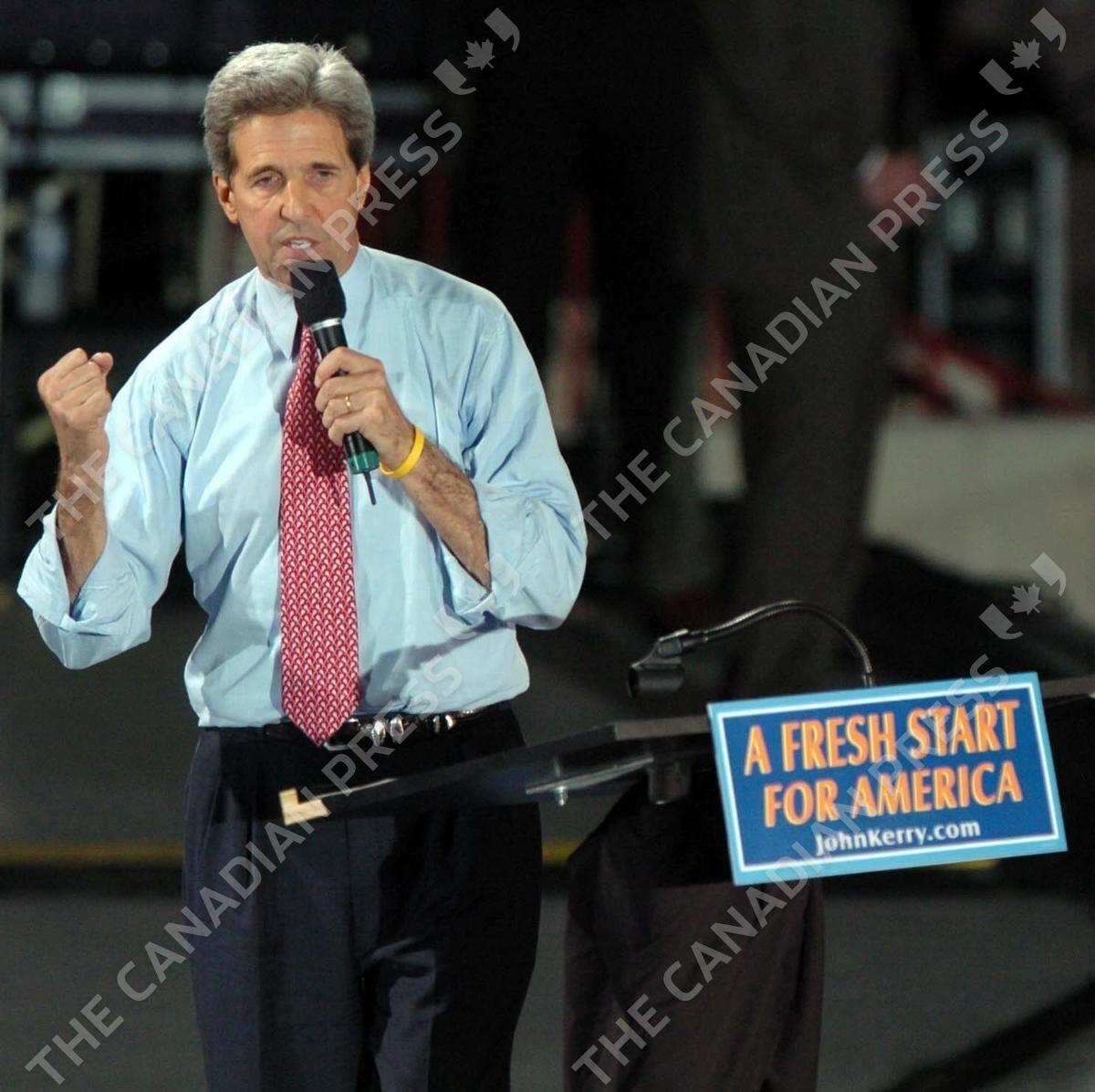 Democratic presidential nominee John Kerry speaks to supporters during a campaign event in Miami, Florida on Friday October 29,2004 (Pictured: John Kerry)