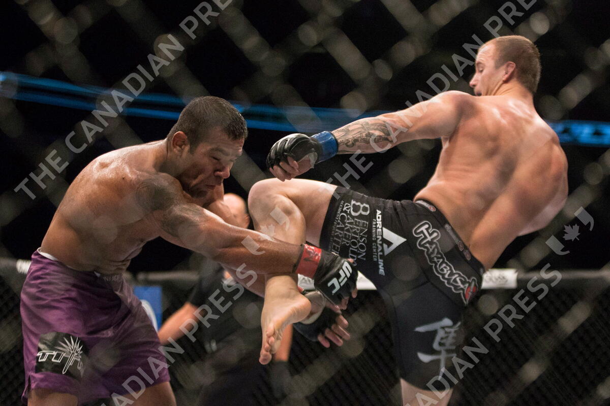 Six years after his last UFC fight, Canadian welterweight Jesse Ronson is back. Canada's Jesse Ronson, right, lands a kick on Brazil's Michel Prazeres during their during UFC 165 bout in Toronto, Saturday, Sept. 21, 2013. THE CANADIAN PRESS/Chris Young