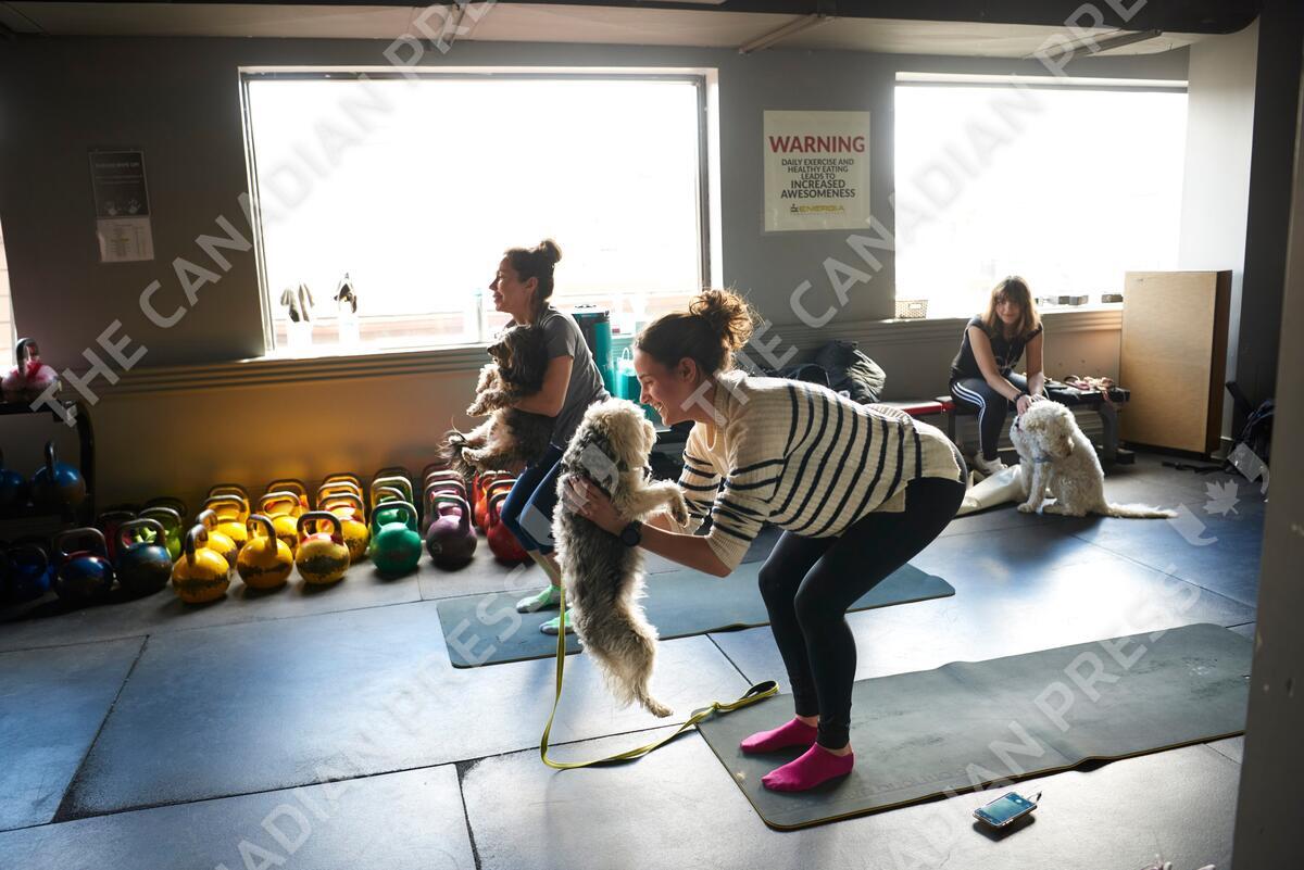 A charity dog yoga class at Energia Athletics in Toronto, Ont., April 27, 2019. THE CANADIAN PRESS IMAGES/Rachel Verbin