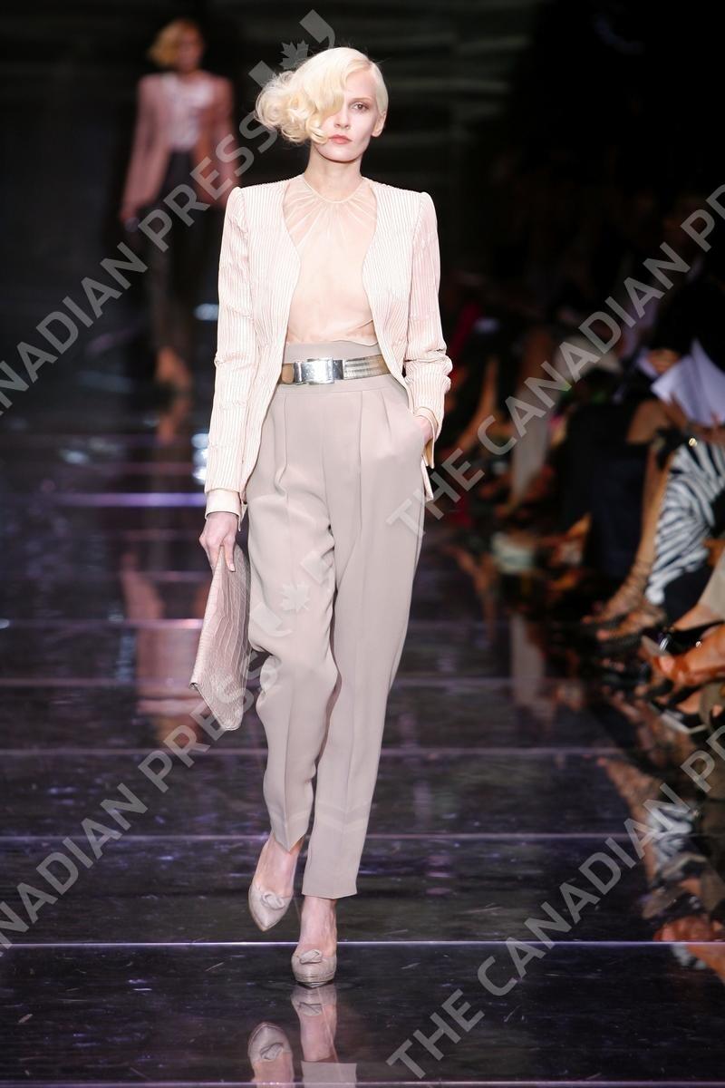 A model displays a creation by Italian designer Giorgio Armani for his fall winter 2008-2009 Haute-Couture collection show in Paris, France on June 30, 2008. Photo by Java/ABACAPRESS.COM