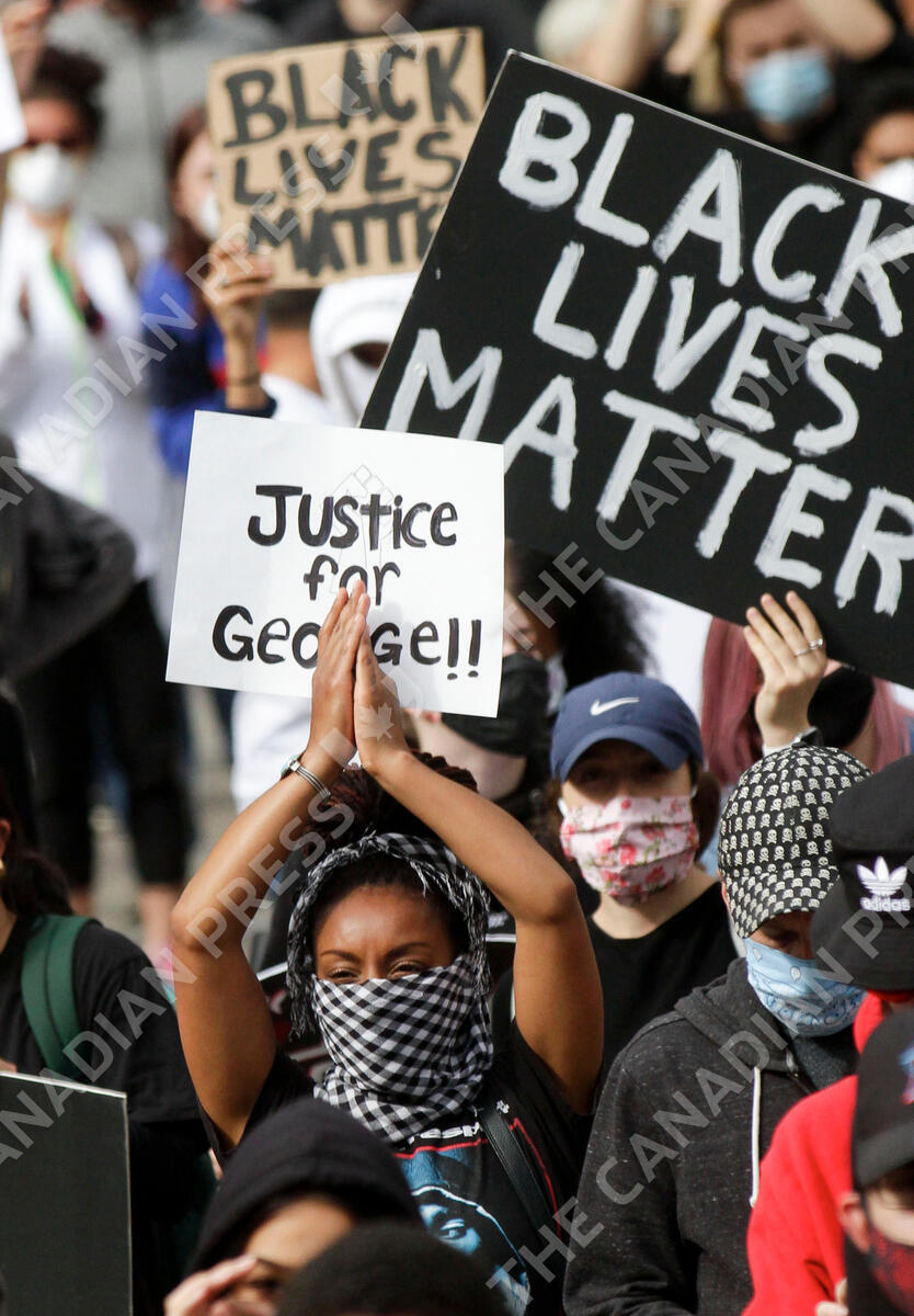 VANCOUVER, June 1, 2020 Protesters rally to demand justice for George Floyd, an unarmed black man, died of police brutality in Minneapolis of the United States on May 25, in Vancouver, British Columbia, Canada, May 31, 2020. (Photo by Liang Sen/Xinhua) (Credit Image: © Liang Sen/Xinhua via ZUMA Wire)