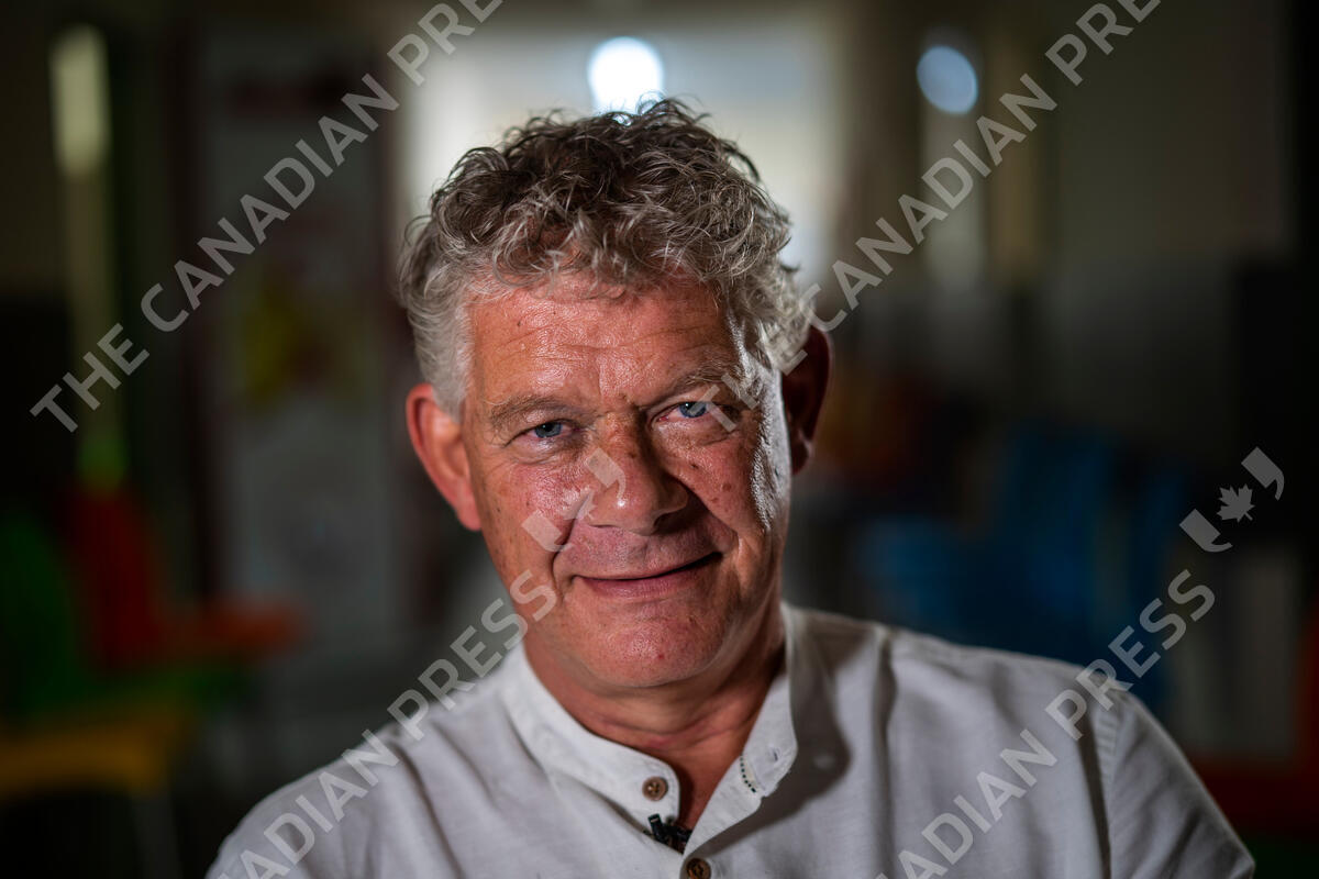 In this photograph taken Thursday May 21, 2020, Dr. Hugo Tempelman sits for an interview at a clinic in the Moutse Valley, 160 kms (100 miles) north east of Johannesburg, South Africa. Finalists of the 2019 edition of the U.S. television show America's Got Talent, the coronavirus crisis put the choir's dreams on hold, as their tour got cancelled, and they returned to rural South Africa. (AP Photo/Jerome Delay)