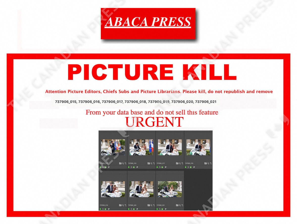 Attention Picture Editors, Chief Subs and Picture Librarians: Please kill, do not republish and remove all the set of these images transmitted previously from ABACA.