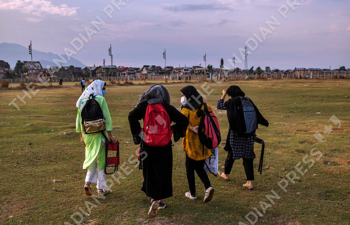 Kashmiri students walk homeward after attending an open-air class inside Eidgah, a ground reserved for Eid prayers, in Srinagar, Indian controlled Kashmir, Friday, July 31, 2020. When months went by without teaching, Muneer Alam, an engineer-turned-math teacher, started the informal community school in the form of an open-air classroom in June. Schools in the disputed region reopened after six months in late February, after a strict lockdown that began in August 2019, when India scrapped the region’s semi-autonomous status. In March schools were shut again because of the coronavirus pandemic. (AP Photo/Dar Yasin)