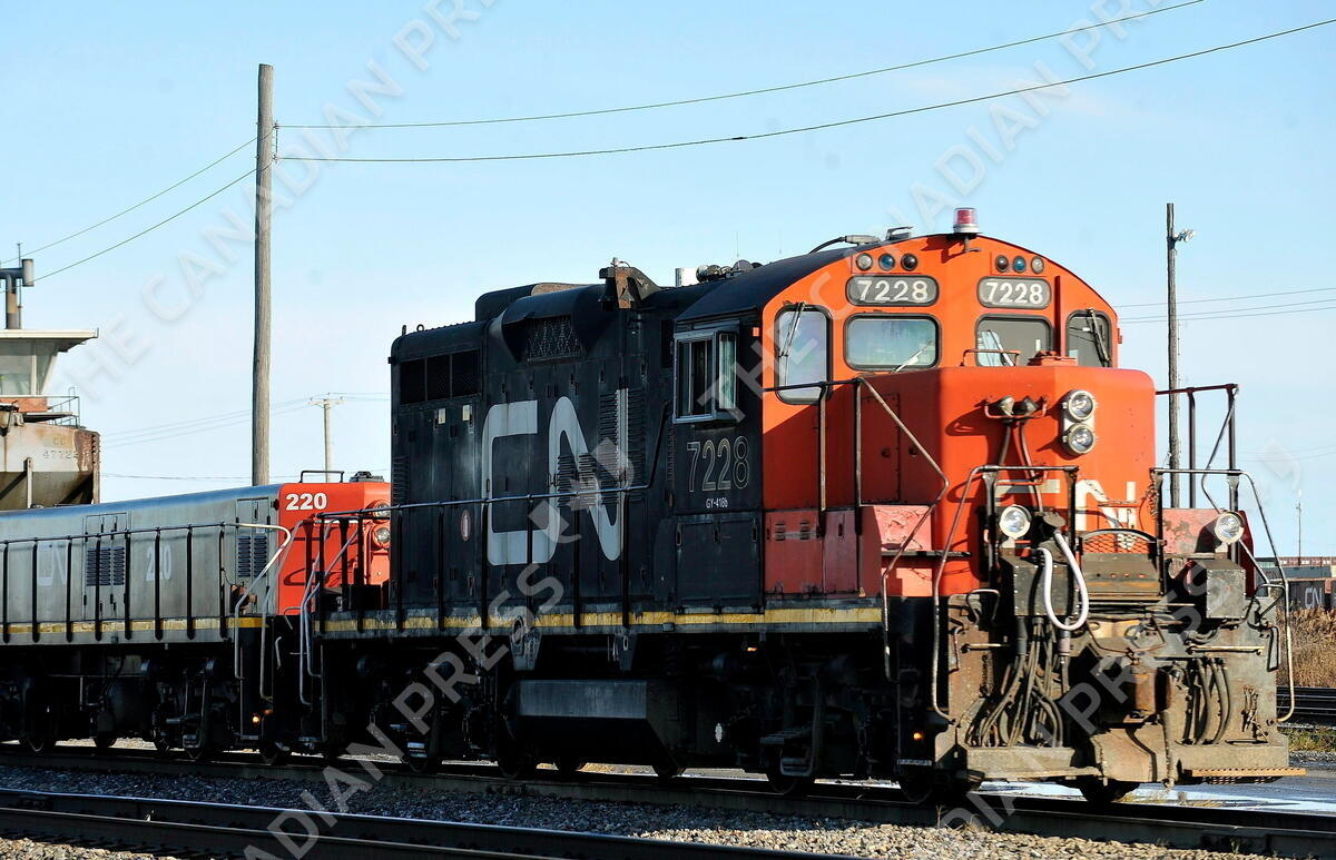 A CN locomotive makes it's way through the CN Taschereau yard in Montreal, Saturday, Nov., 28, 2009. Canadian National Railway Co. executives will discuss first-quarter earnings on Monday after markets close. THE CANADIAN PRESS/Graham Hughes