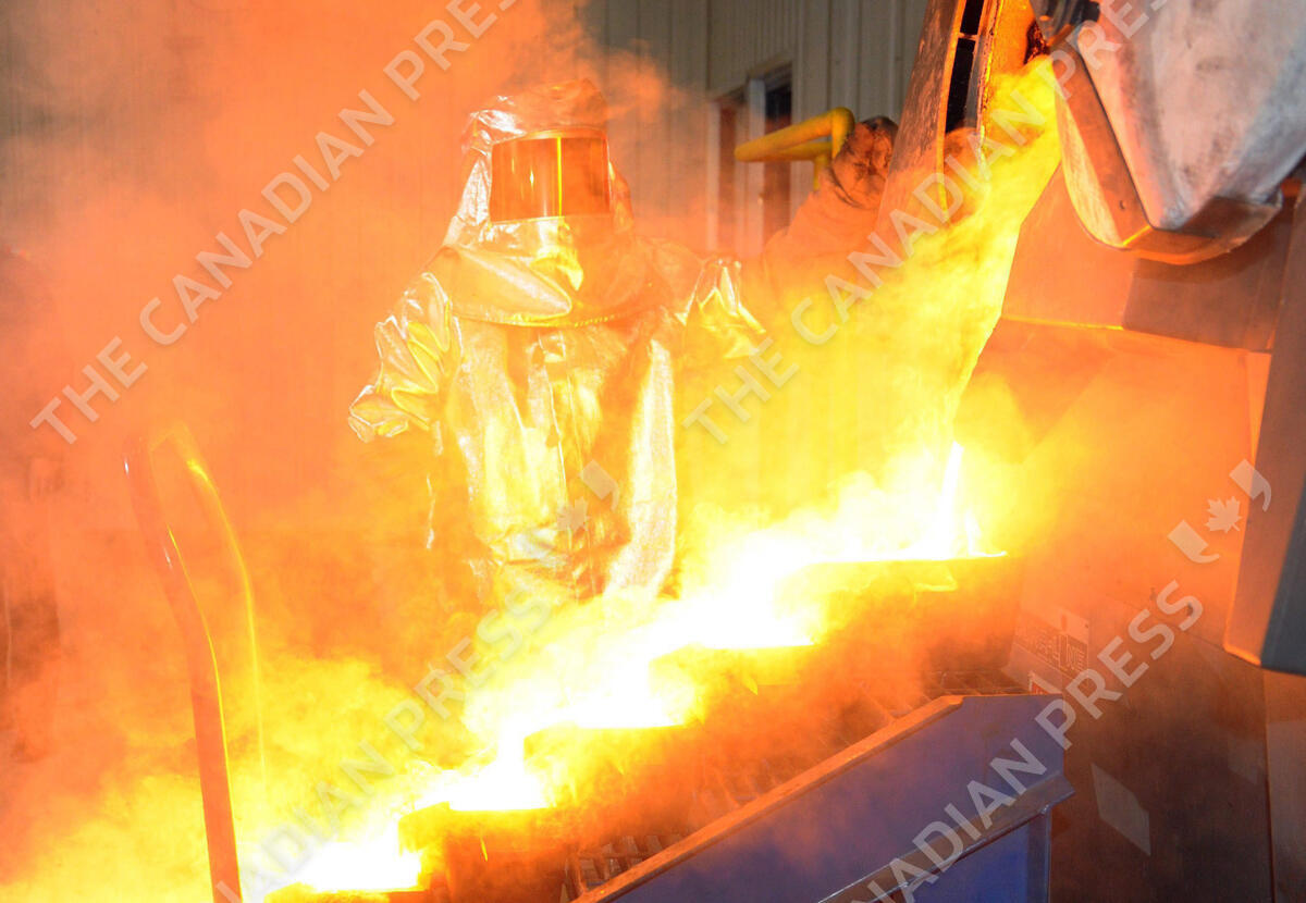 Gold is poured as at Agnico-Eagle's Meadowbank mine facility in Nunavut on August 24, 2011. THE CANADIAN PRESS/Sean Kilpatrick