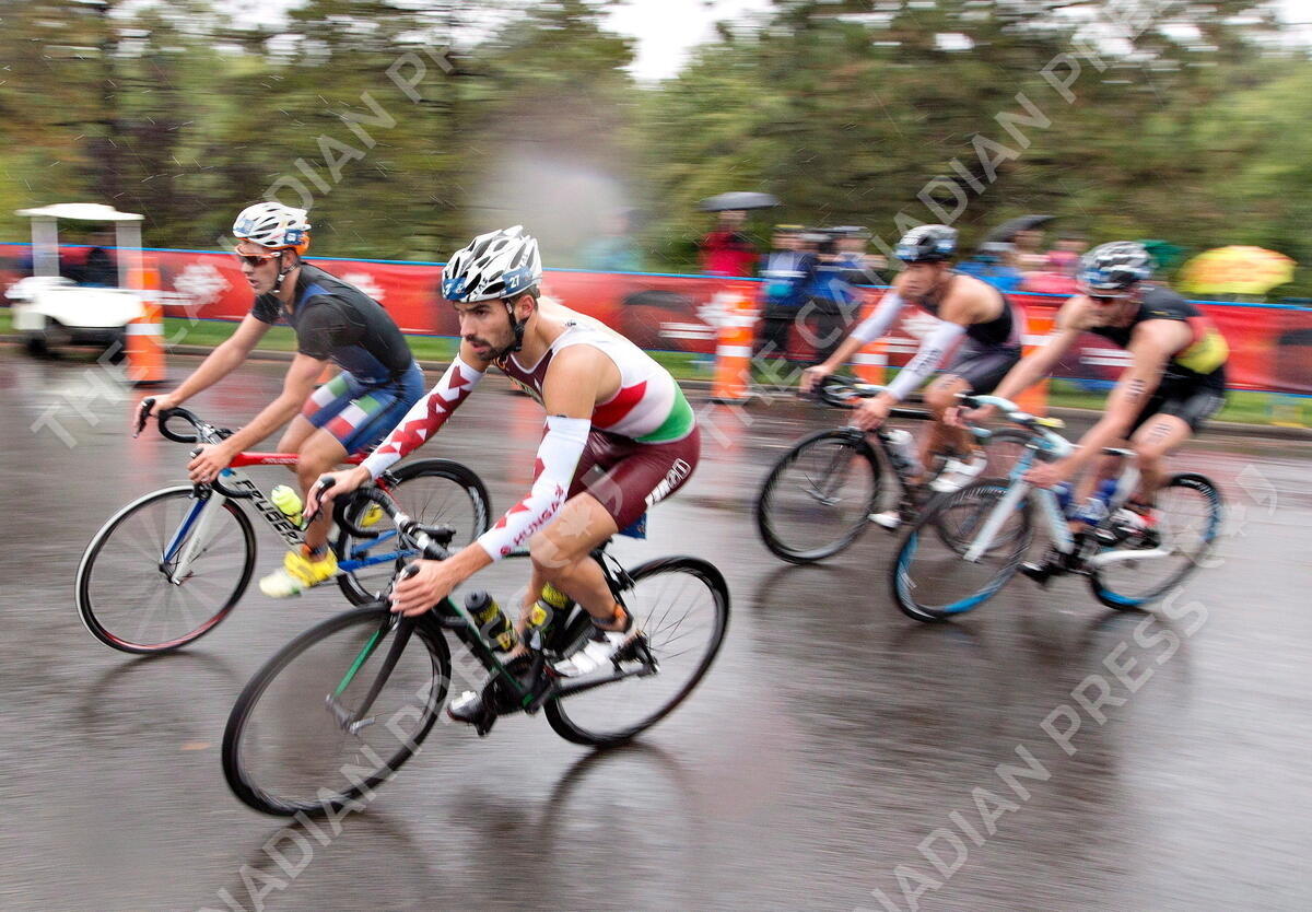 Tamas Toth, of Hungary, makes the turn during the Elite Men's Championship at the ITU World Triathlon Grand Final in Edmonton on September 6, 2015. The 2020 World Triathlon Grand Final in Edmonton has been cancelled due to the COVID-19 pandemic. The International Triathlon Union announced the cancellation Friday, saying the global pandemic has made it impossible to stage the event. The races were originally scheduled to take place Aug. 17-23. THE CANADIAN PRESS/Jason Franson