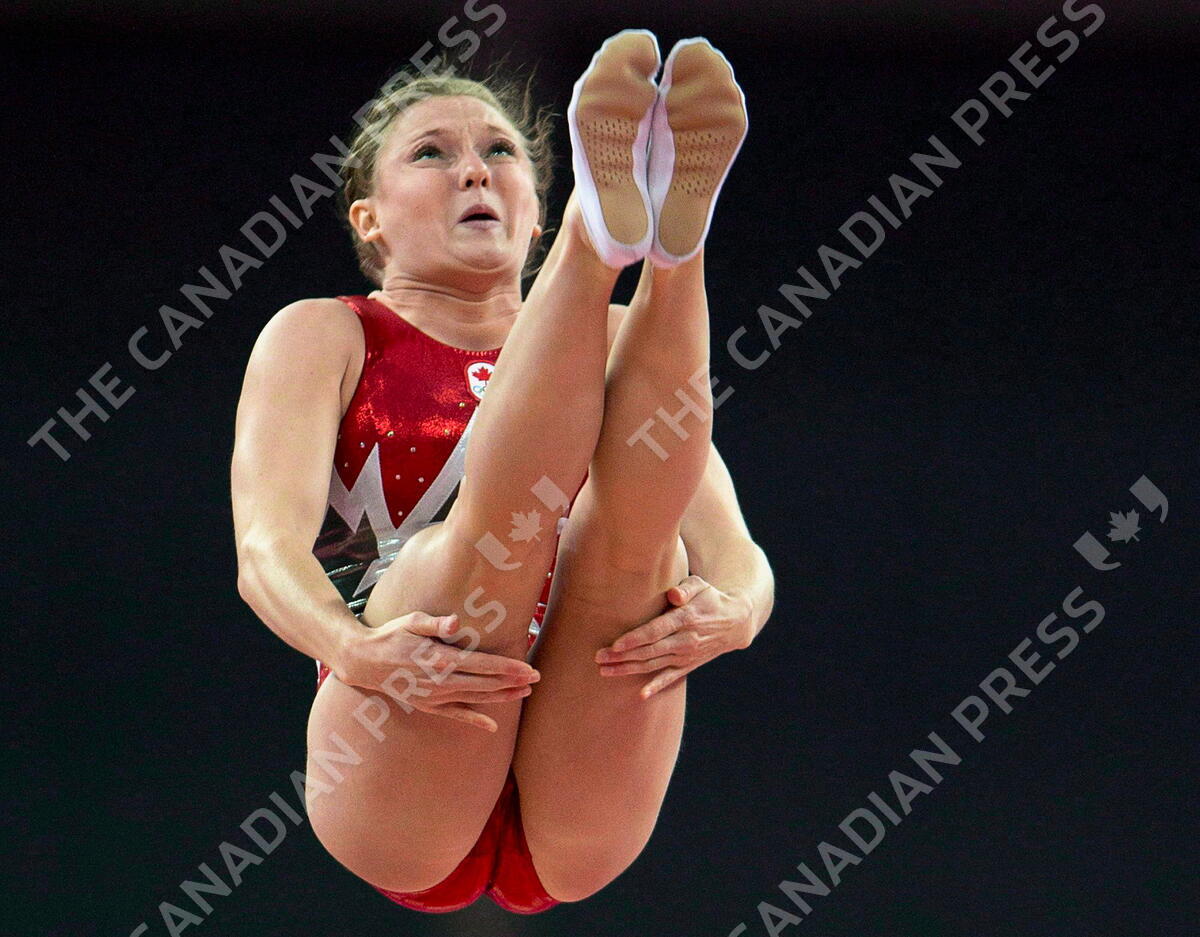 Rosie MacLennan performs her gold medal routine during the women's trampoline at the 2012 Olympic Games in London on August 4, 2012. After a wave of demonstrations against racial injustice around the world, the International Olympic Committee is in talks with athlete groups about potentially easing protest bans at the Olympic Games. THE CANADIAN PRESS/Ryan Remiorz