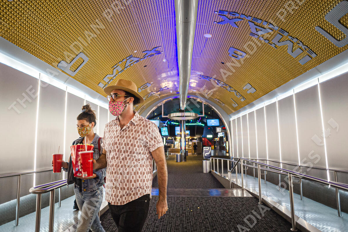 Theatre-goers walk to their show at a Cineplex theatre in downtown Toronto on Wednesday, Aug. 26, 2020. THE CANADIAN PRESS/Christopher Katsarov