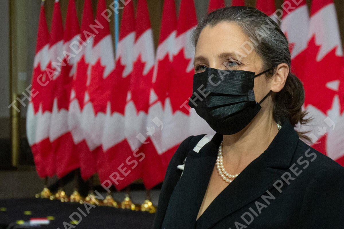 Deputy Prime Minister and Minister of Finance Chrystia Freeland arrives for a press conference in Ottawa, Ontario on Tuesday October 26, 2021. THE CANADIAN PRESS IMAGES/Lars Hagberg