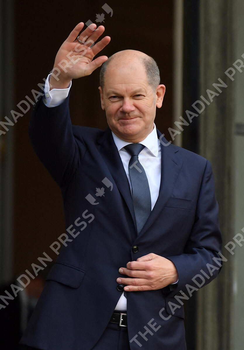 French President Emmanuel Macron greets German Chancellor Olaf Scholz ahead of their meeting at the Elysee presidential palace on December 10, 2021 in Paris, France. This is the first trip abroad of the German Chancellor since his election. Photo by Christian Liewig/ABACAPRESS.COM