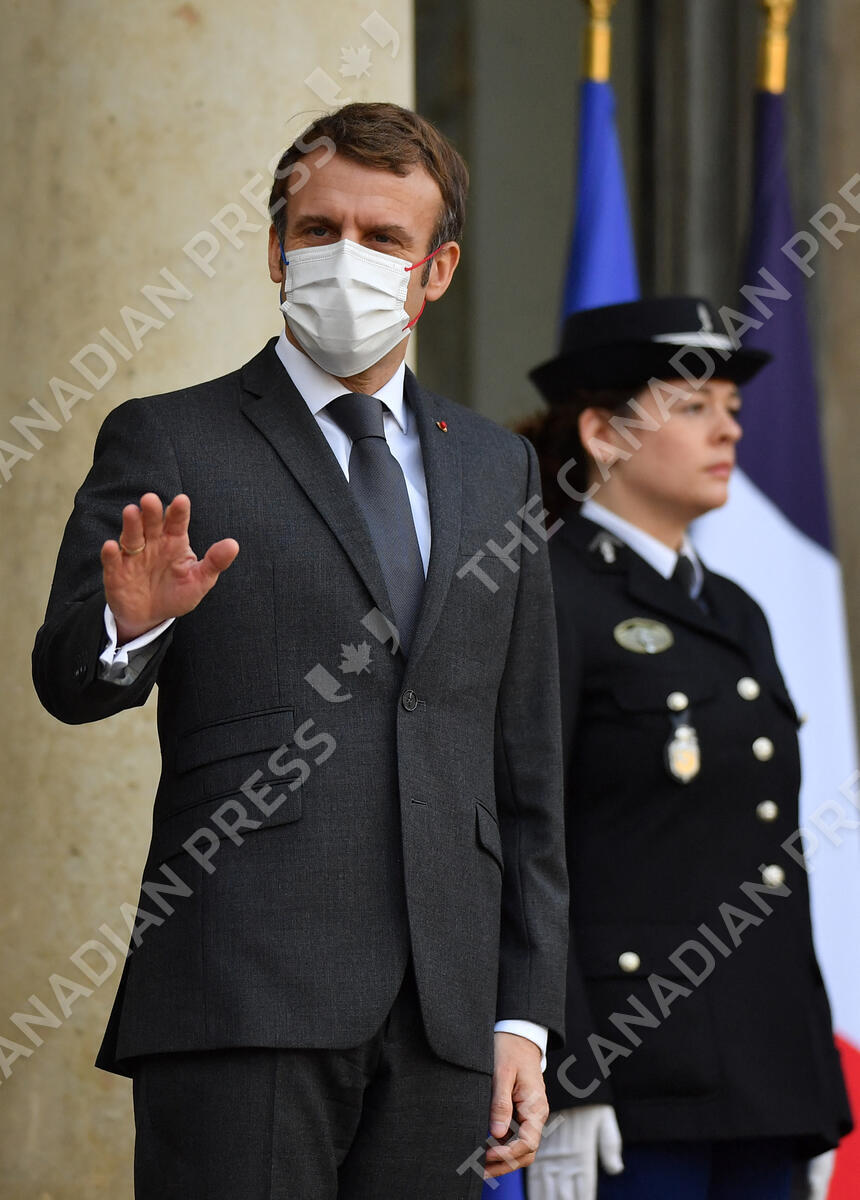 French President Emmanuel Macron greets German Chancellor Olaf Scholz ahead of their meeting at the Elysee presidential palace on December 10, 2021 in Paris, France. This is the first trip abroad of the German Chancellor since his election. Photo by Christian Liewig/ABACAPRESS.COM