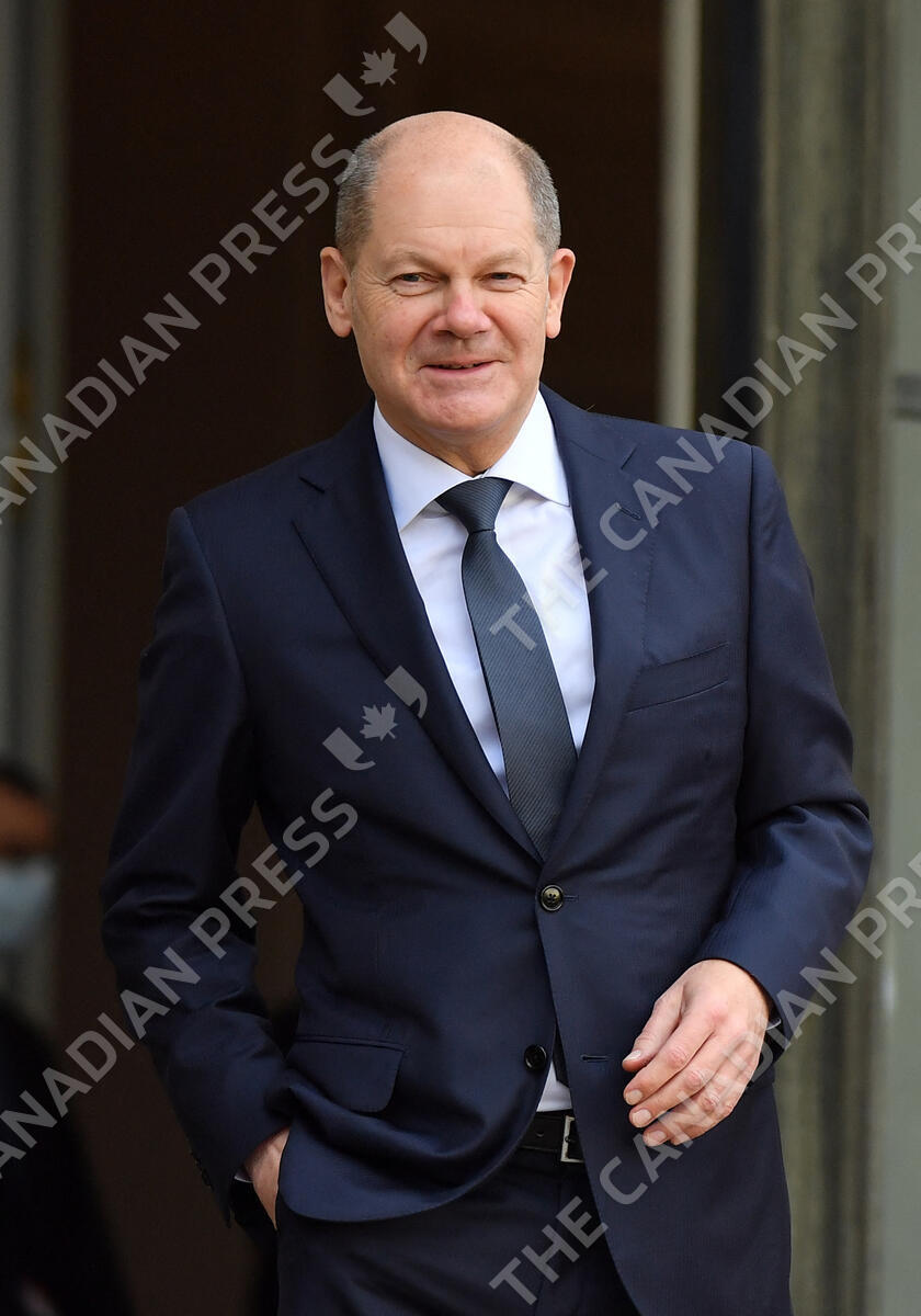 French President Emmanuel Macron greets German Chancellor Olaf Scholz ahead of their meeting at the Elysee presidential palace on December 10, 2021 in Paris, France. This is the first trip abroad of the German Chancellor since his election. Photo by Christian Liewig/ABACAPRESS.COM
