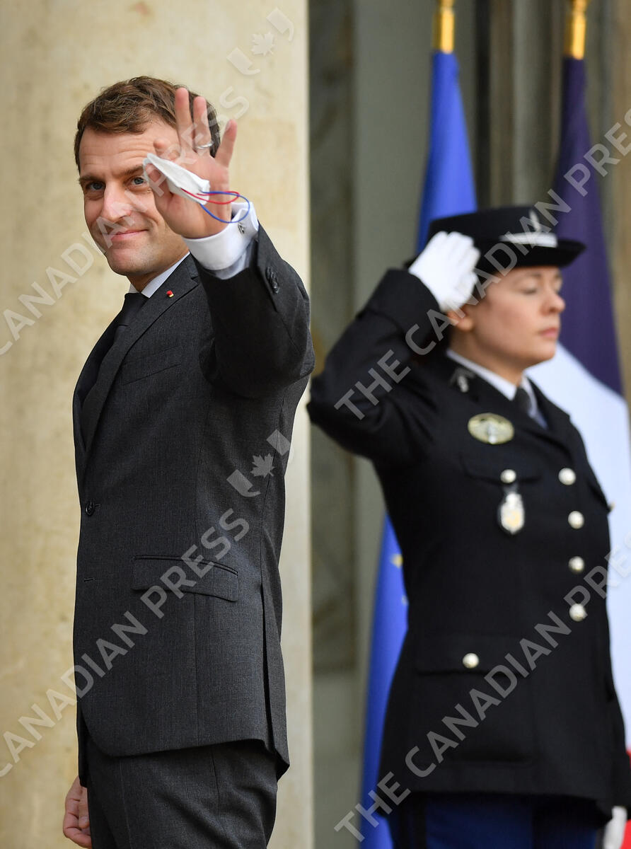 French President Emmanuel Macron greets German Chancellor Olaf Scholz ahead of their meeting at the Elysee presidential palace on December 10, 2021 in Paris, France. This is the first trip abroad of the German Chancellor since his election. Photo by Christian Liewig/ABACAPRESS.COM
