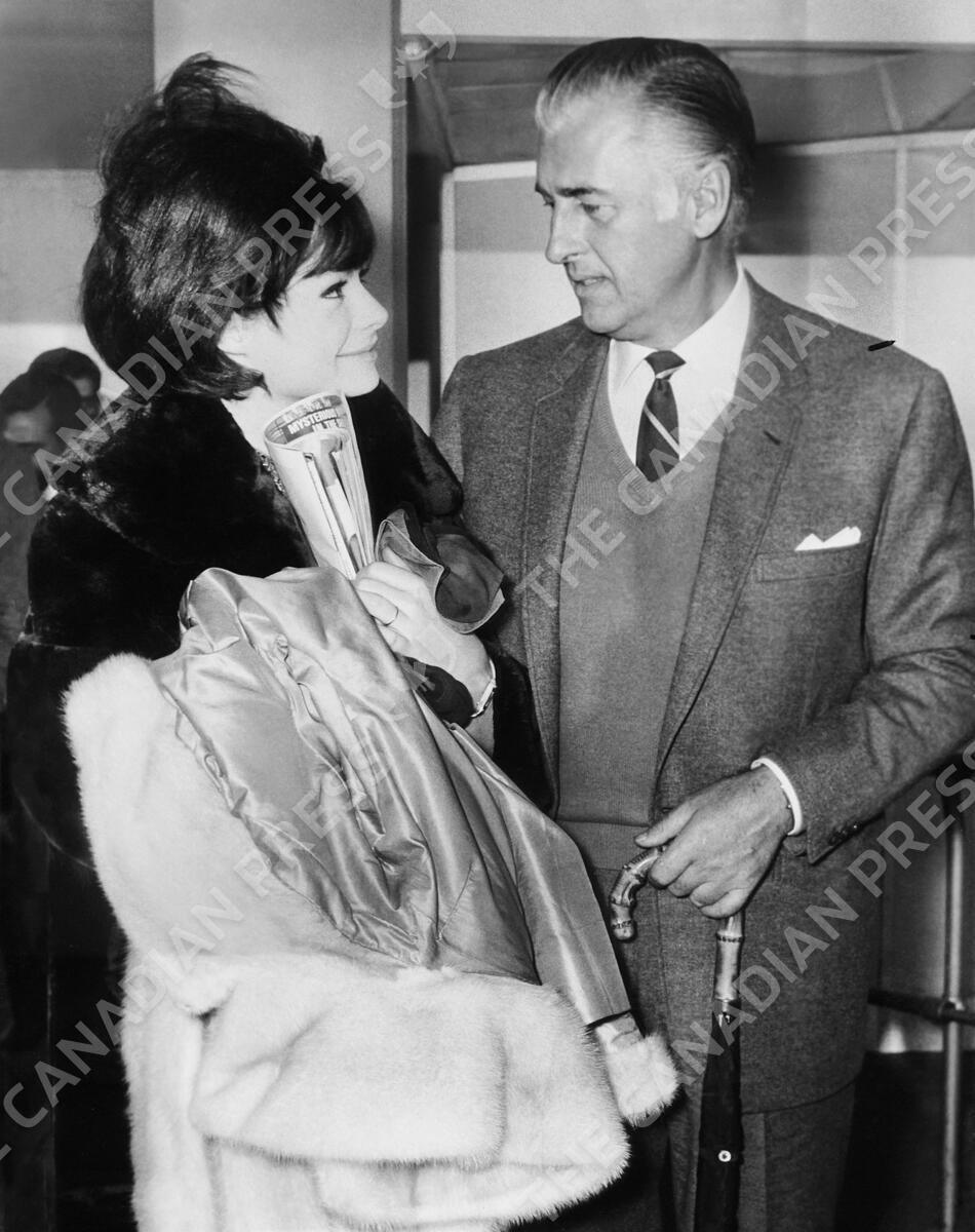 From left: Caroline LeCerf, Stewart Granger at Heathrow Airport in London, 1964