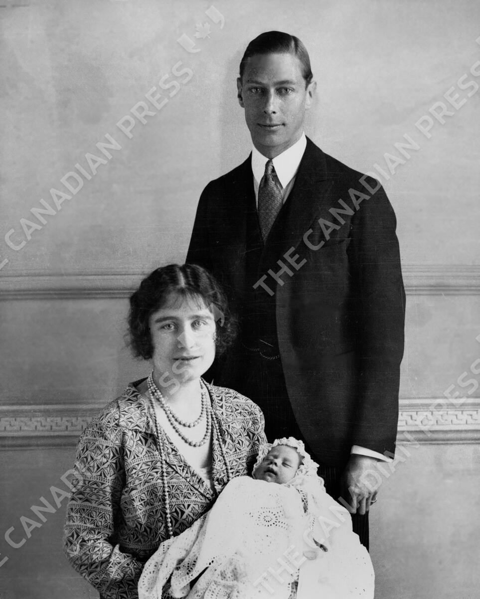 British Royalty. Queen Elizabeth II of England, as a baby (then Princess Elizabeth), held by the Queen Mother Elizabeth, with father King George VI, then both the Duke and Duchess of York, dated May 1926.photo: Courtesy Everett Collection