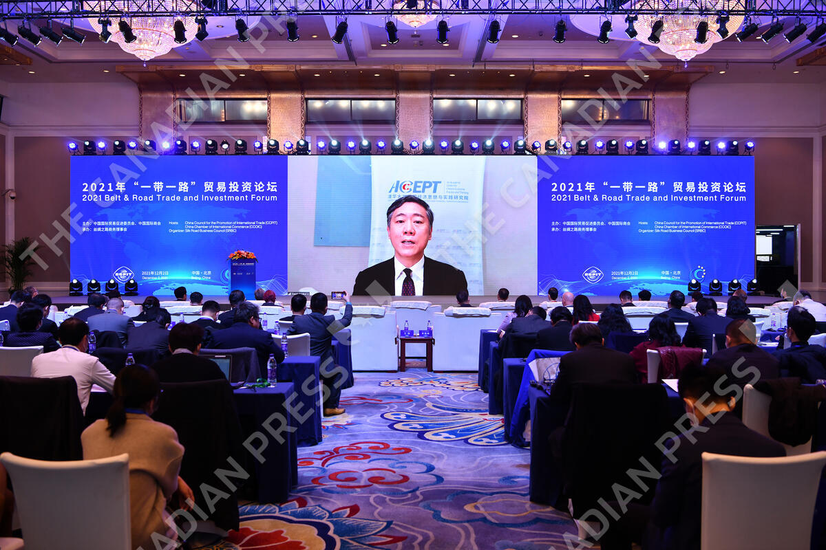 BEIJING, Dec. 2, 2021 Li Daokui, Director of the Academic Center for Chinese Economic Practice and Thinking (ACCEPT) at Tsinghua University addresses the 2021 Belt & Road Trade and Investment Forum via video link in Beijing, capital of China, Dec. 2, 2021. (Credit Image: © Li Xin/Xinhua via ZUMA Press)