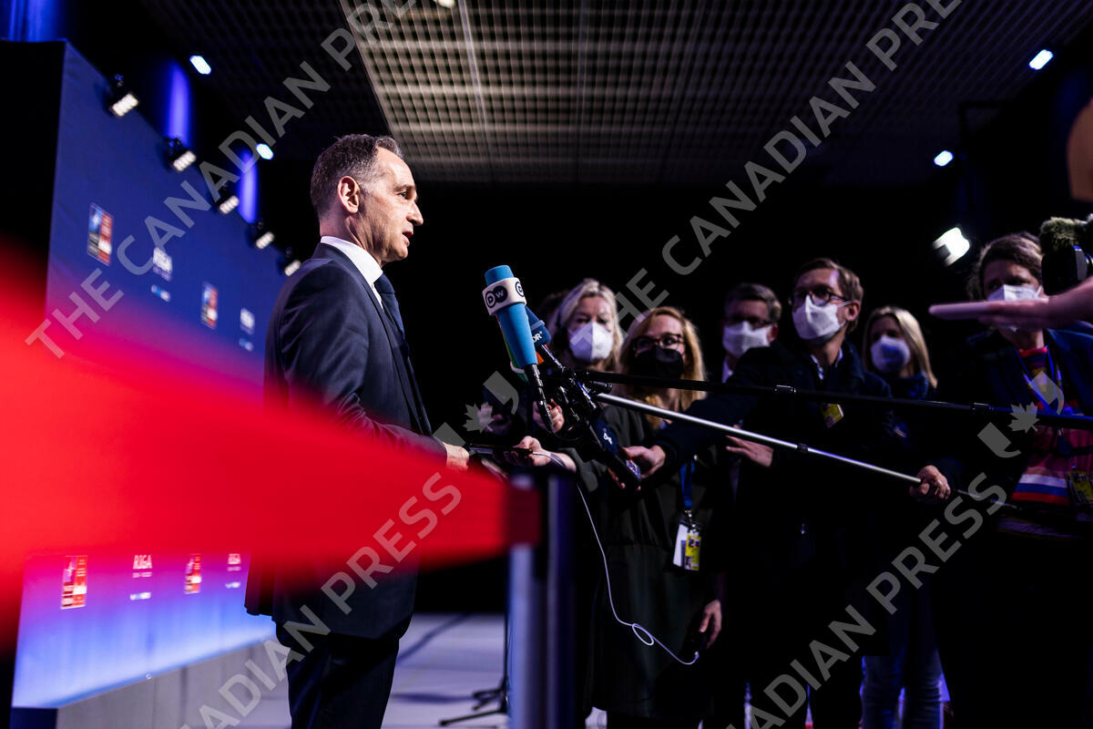 Heiko Maas, Executive Foreign Minister, speaks to the media at the NATO Foreign Ministers' Meeting in Riga, November 30th, 2021. After Riga, Maas travels to the NATO foreign ministers' meeting, at which, among other things, the political situations in Afghanistan and Ukraine are discussed. Copyright: Florian Gaertner / photothek.de (Credit Image: © Florian Gaertner/dpa via ZUMA Press)
