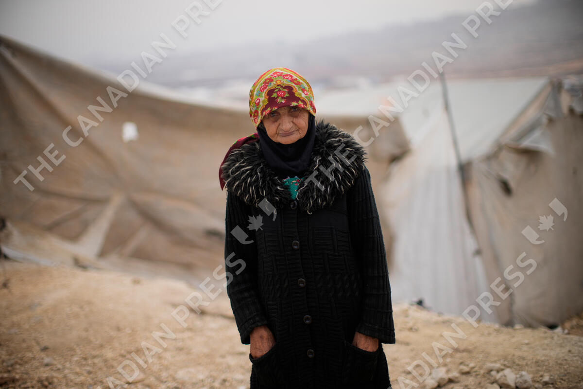 A Syrian woman poses for a photograph in a refugee camp for displaced people run by the Turkish Red Crescent in Sarmada district, on the outskirts north of Idlib, Syria, Thursday, Nov. 25, 2021. (AP Photo/Francisco Seco)