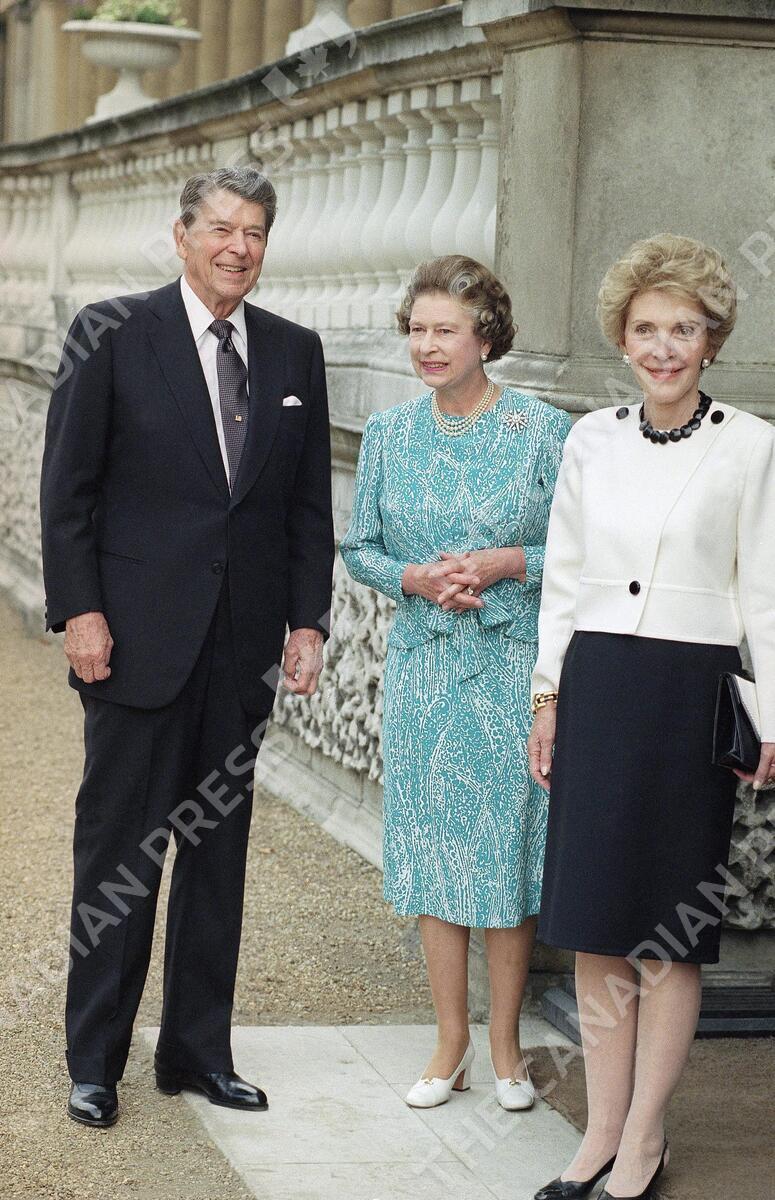 **ADVANCE FOR TUESDAY, FEB. 24** **FILE** In this June 14, 1989 file photo former U.S. President Ronald Reagan and wife Nancy (right) meet Britain's Queen Elizabeth II for a lunch engagement at Buckingham Palace, London. Buckingham Palace announced the Queen made Reagan an honorary Knight Grand Cross of the Most Honorable Order of the Bath, an order established in 1725 which recognizes services to Britain. (AP Photo/Martin Cleaver, file)