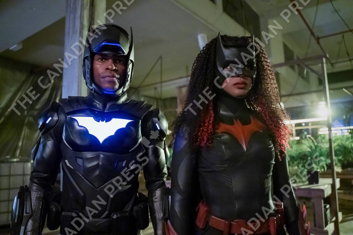 BATWOMAN, from left: Camrus Johnson as Batwing, Javicia Leslie as Batwoman, Mad As A Hatter', (Season 3, ep. 301, aired Oct. 13, 2021). photo: Colin Bentley / ©The CW / Courtesy Everett Collection