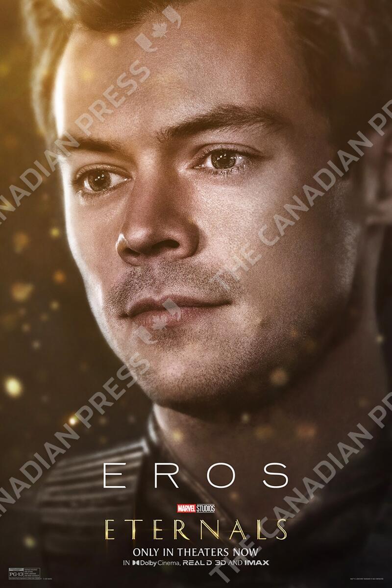 ETERNALS, US character poster, Harry Styles as Eros, 2021. © Walt Disney Studios Motion Pictures / © Marvel Studios / Courtesy Everett Collection