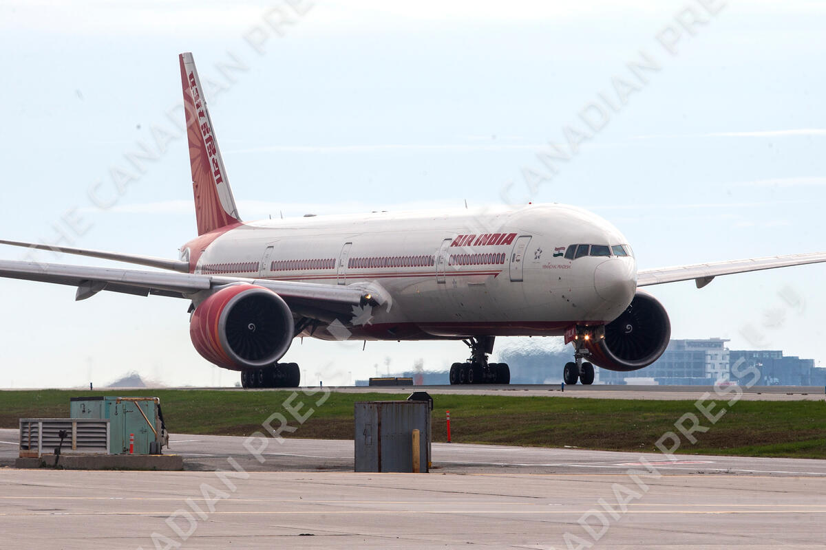 An Air India plane is seen taxiing on the runway at Toronto's Pearson Airport on Friday, October 29, 2021. THE CANADIAN PRESS IMAGES/Chris Young