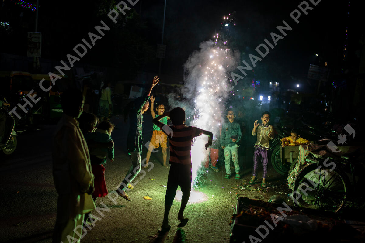 Children play with firecrackers during Diwali celebrations in New Delhi, India, Thursday, Nov. 4, 2021. Diwali, the festival of lights, is one of Hinduism's most important festivals dedicated to the worship of Lakshmi, the Hindu goddess of wealth. (AP Photo/Altaf Qadri)